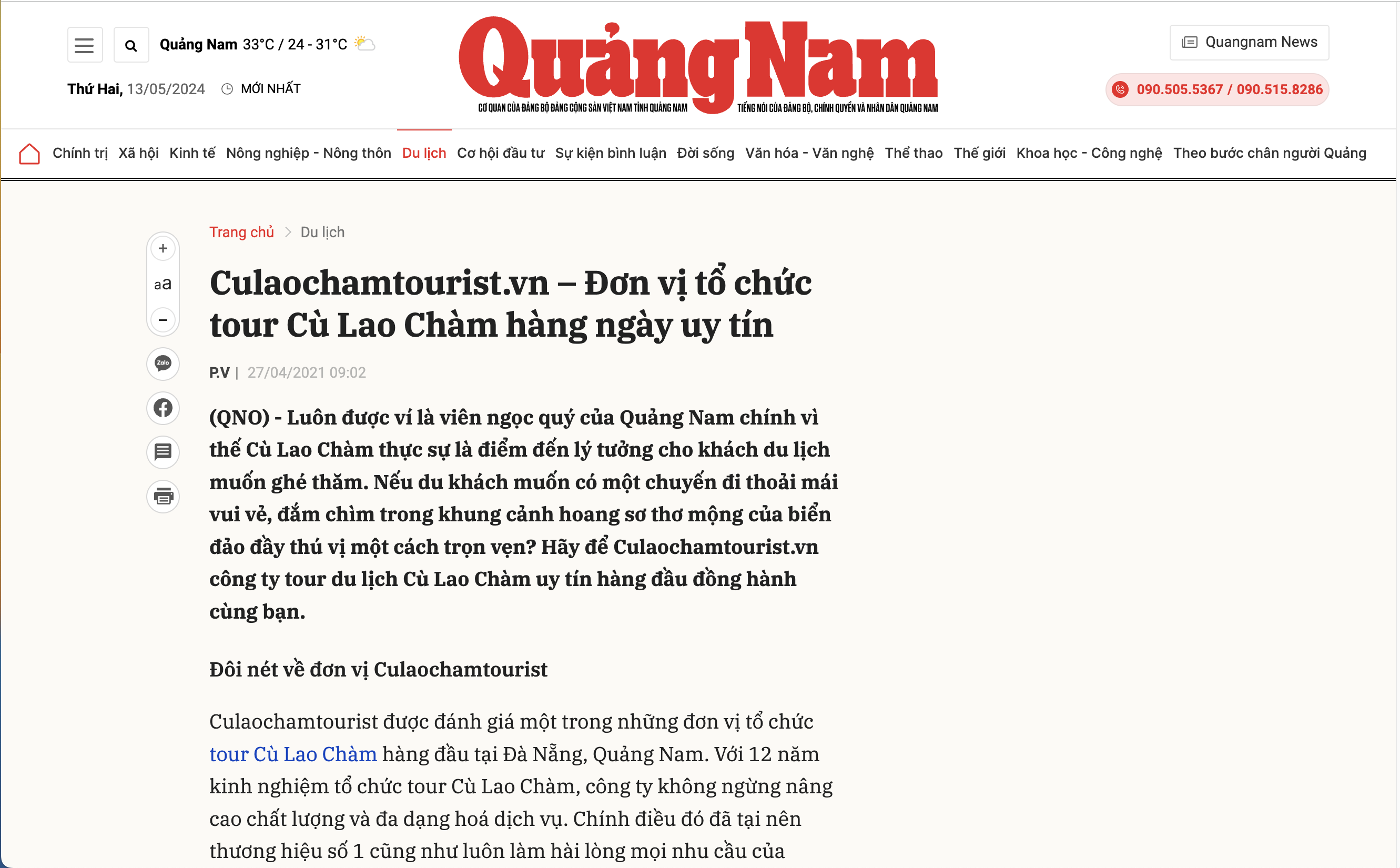 CÔNG TY CỔ PHẦN DU LỊCH CÙ LAO CHÀM TOURIST